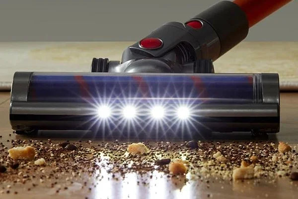 LED-lyset foran gør det lettere at se støv, hår og krummer langs kanter og i mørkere områder.