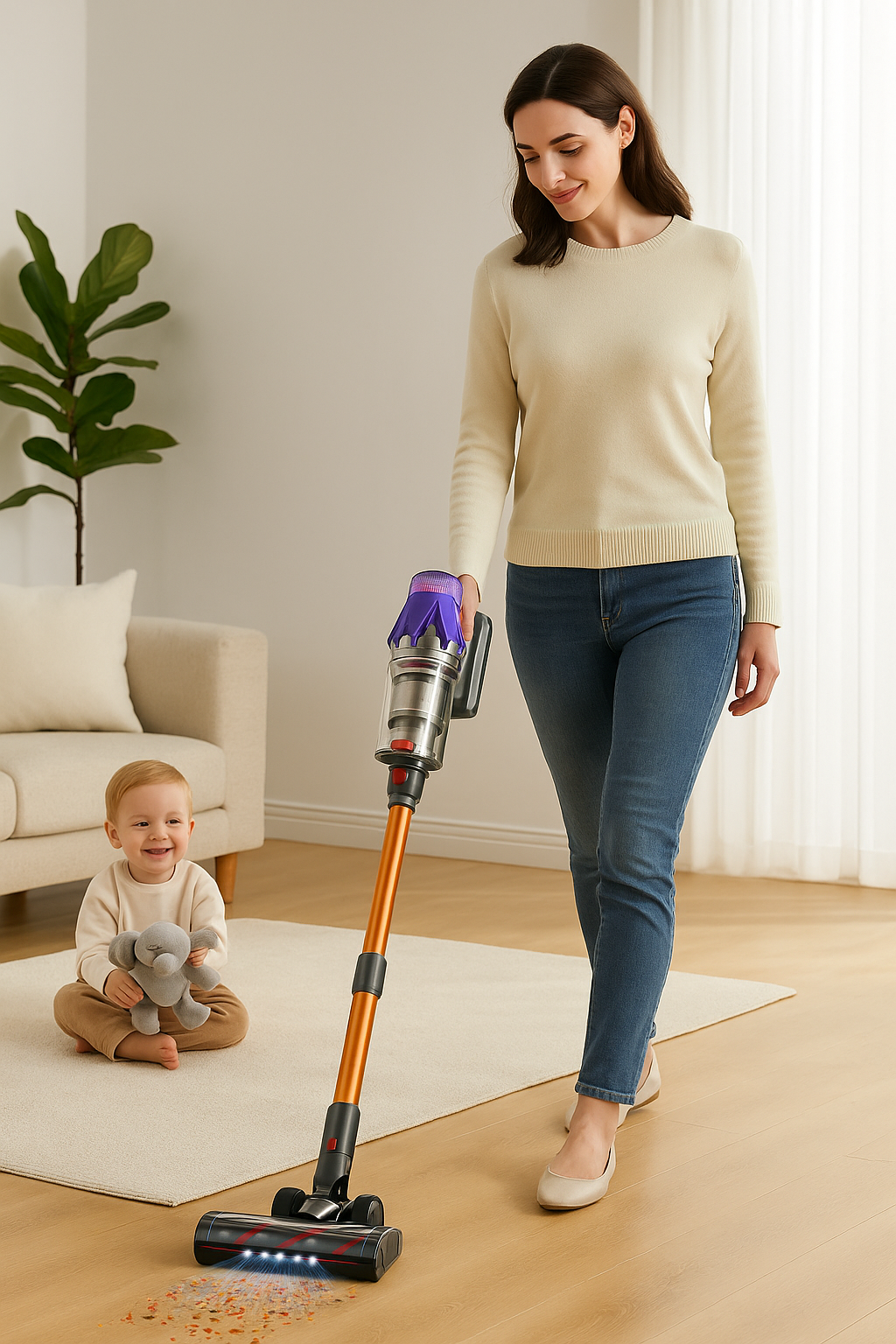 Laresar V7 er en kraftig og let trådløs støvsuger med børsteløs motor, høj sugestyrke og smart betjening. Med LED-touchskærm, selvstående parkering og vægmonteret opladning får du en fleksibel løsning til daglig rengøring på både hårde gulve og tæpper.